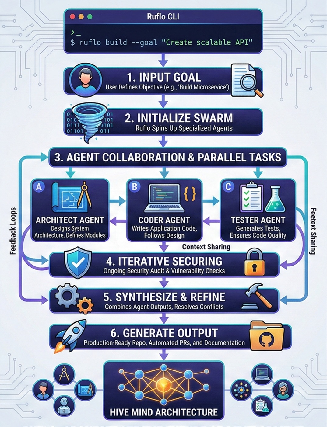 Ruflo emerges as the definitive framework for orchestrating these complex, multi-agent interactions. Unlike earlier orchestration libraries that relied on linear, step-by-step chains, Ruflo introduces a non-linear, event-driven architecture called the Hive Mind. The Hive Mind acts as a centralized message bus and state manager, allowing agents to subscribe to relevant events, interrupt each other, and spin up sub-threads for deep-dive collaborative sessions.